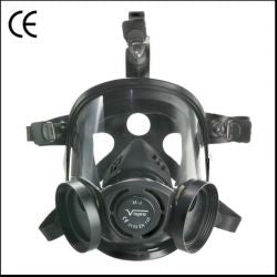 Face piece covers eyes, nose and mouth. Faceblank made in thermoplastic rubber. Two screw threaded cartridge connector. Integrated speech diaphragm inhalation and exhalation valve. Head harness in one piece with 5 anchorage points. Panoramic visor in polycarbonate.